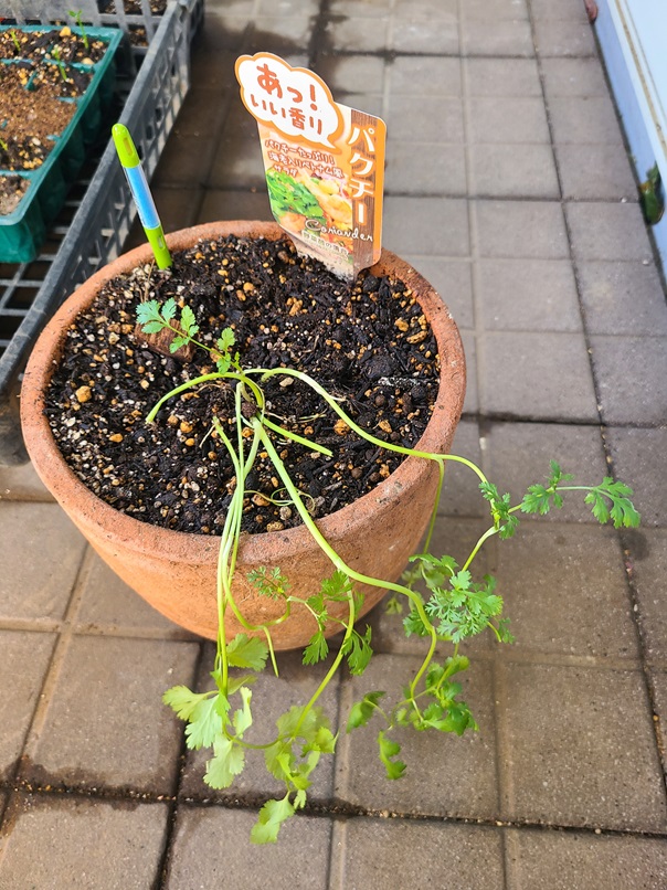 大好物のパクチーがいつでも食べられる贅沢な夢を見つつ購入し、すぐに植木鉢に移植