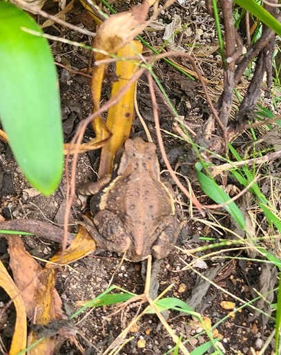 手入れをしていると、パクチーの森の中から動くものが飛び出してきた