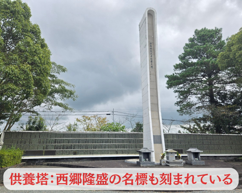 薩軍の墓地:大きな墓標のみ(個人の墓標なし)
